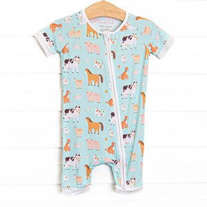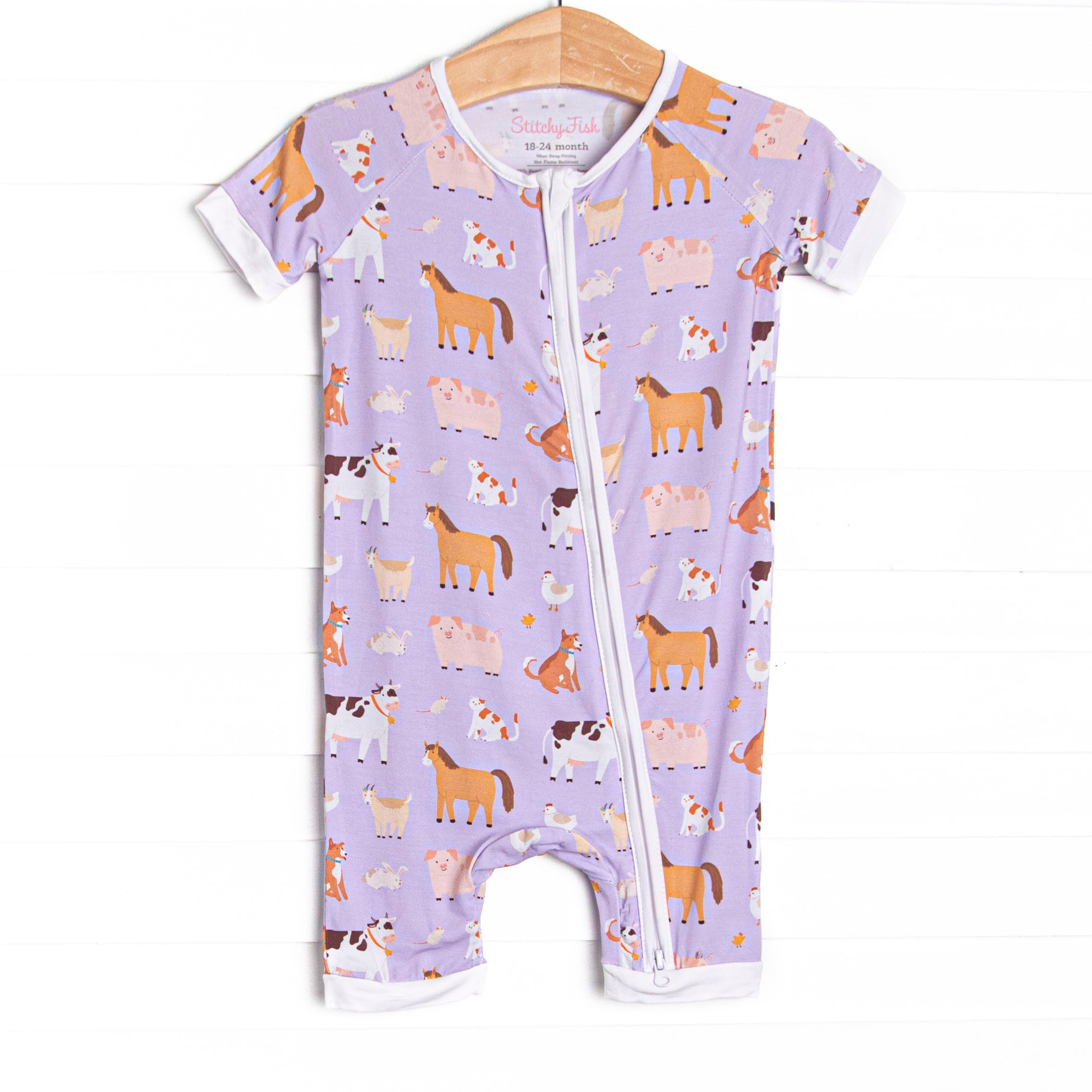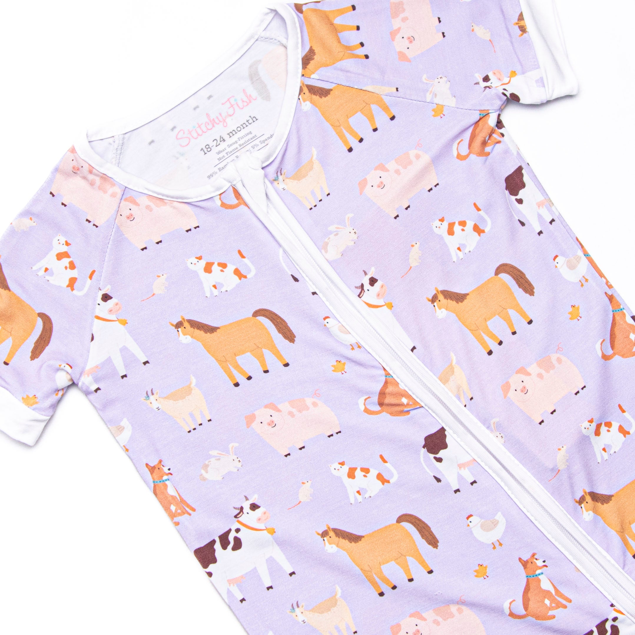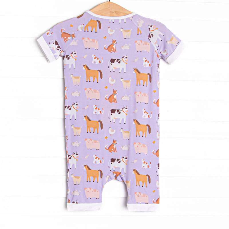 Barnyard Bedtime Bamboo Short Zippy Pajama, Purple