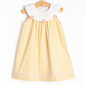 We love this dress so much. The detailing and the covered buttons are a great touch.