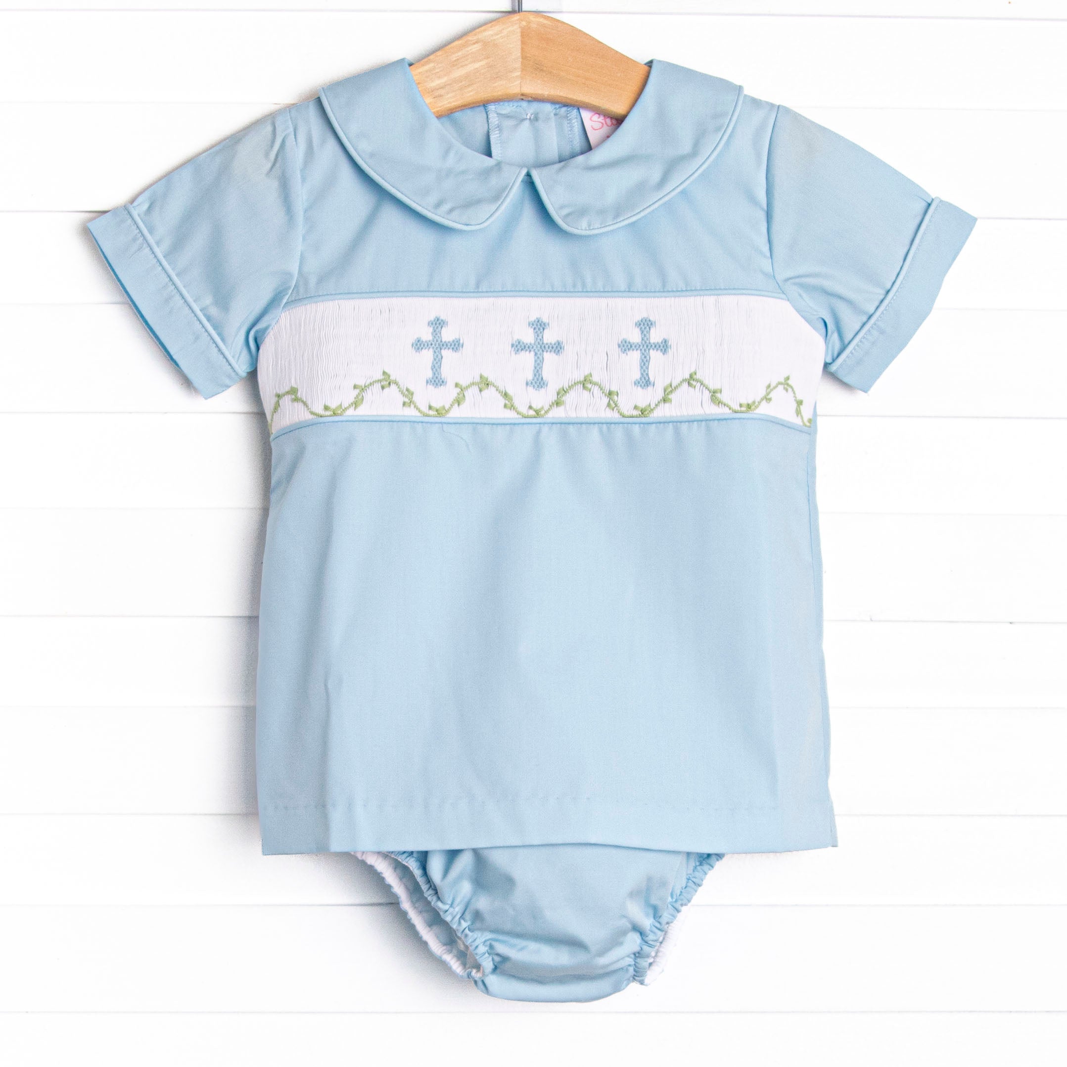 Blessings and Blooms Smocked Diaper Set, Blue