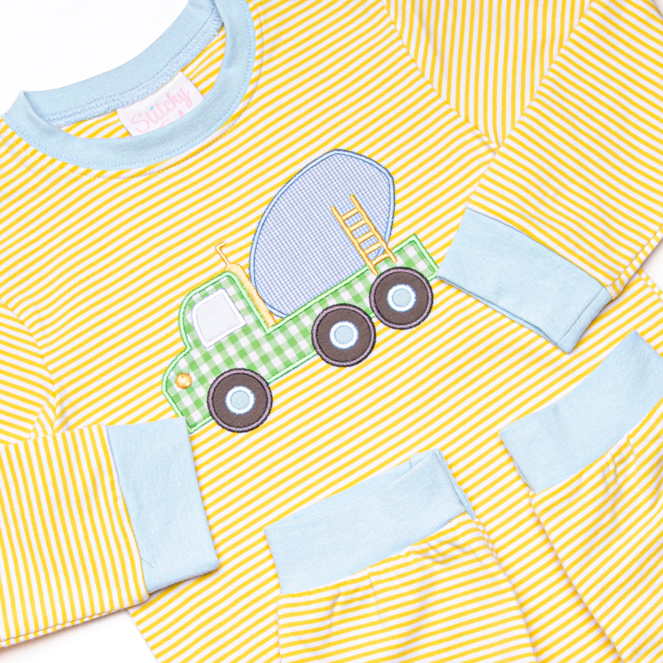 ["12M","18M","24M","2T","3M","3T","6M","9M","Applique Romper","Boy","Boy 2022","Boy 21","Boy 22","Boy romper","Boy21","Boy22","Boyh","Boys","Boys 21","Boys 22","Boys Romper","Boys22","Bubble","Bubbles","Bubbles22","Cement Truck","concrete truck","construction","Dump Truck","Fall In Stock","Fall In Stock 25","Knit Romper","Long Romper","Long Sleeve Romper","New Arrivals","Regular Price","Romper","rompers","sept25","Stripe","Striped","Stripes","tow truck","Truck","Trucks","yellow","Yellow Stripe","Yellow Stripes"]