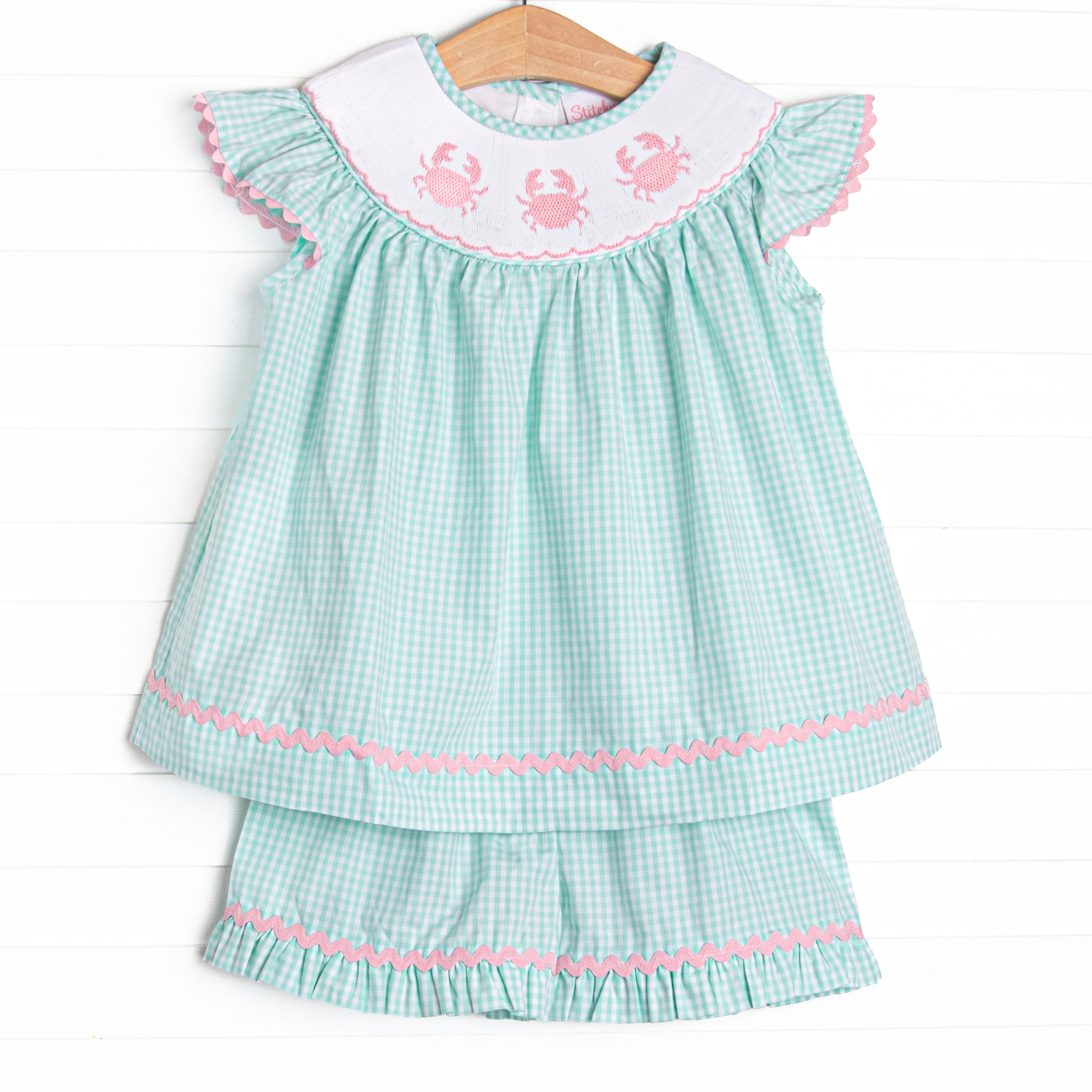 ["12M","18M","24M","2T","3T","4T","5","6","7","crab","Crab Smocking","Crabby","crabs","DV26","feb26","flutter","flutter sleeve","Flutter sleeves","GIRL","Girl 2022","Girl 21","Girl 22","Girl21","Girl22","GirlGirls","Girls","Girls 2022","Girls 21","Girls 22","Girls20","Girls21","Girls22","Green","Green Gingham","mint gingham","Mint Green","New Arrivals","pink ric rac","Regular Price","ric rac","Ric Rac Trim","Ruffle","Ruffle Hem","Ruffle Sleeves","Ruffle Trim","Ruffles","Set","Sets","Sets22","Short Set","shorts set","Smock","Smocked","Smocked Outfit","Smocked Set","smocked short set","smockedco","Smocking","spring in","Spring In Stock","Spring In Stock 26","Summer Short Set","Woven Set","Woven Shorts Set"]