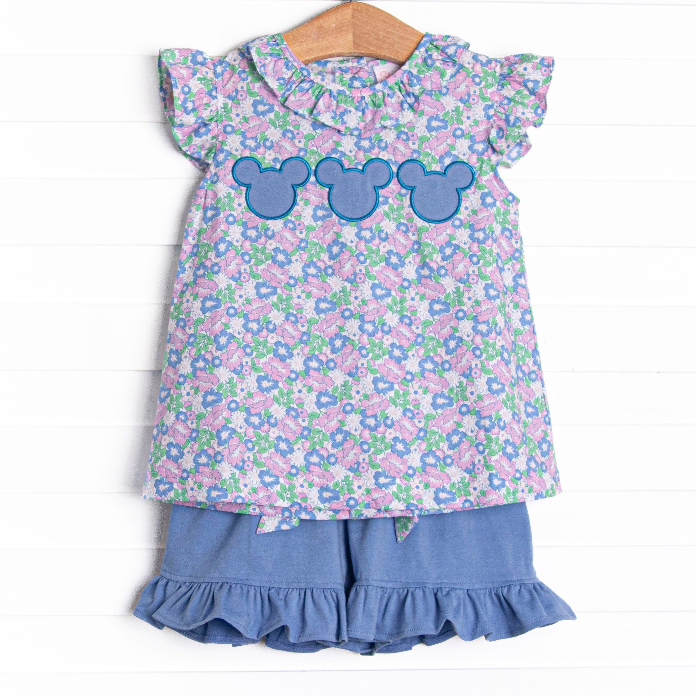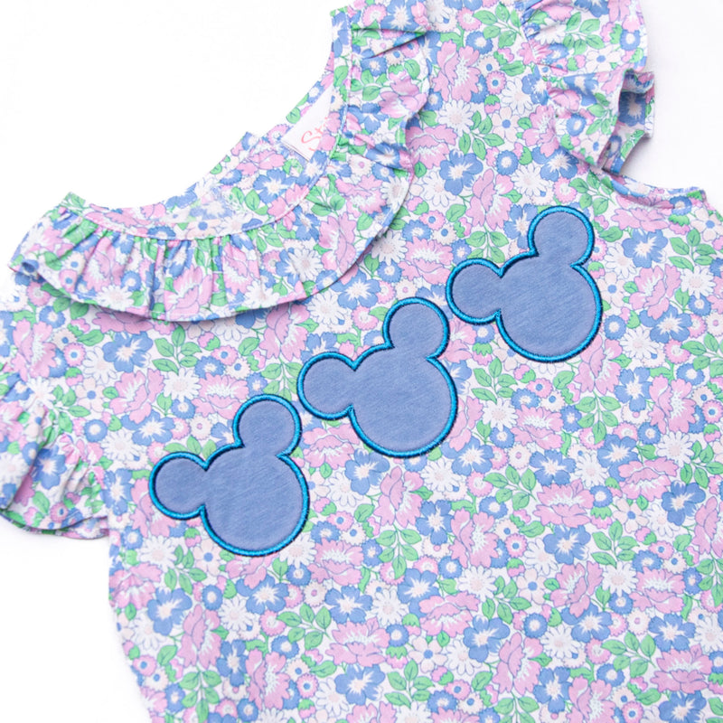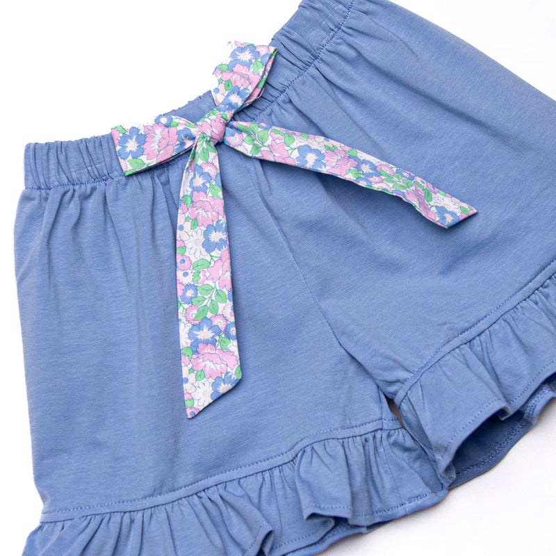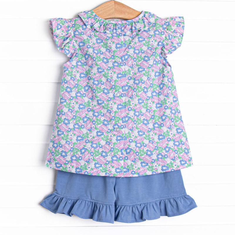 Floral Fairytale Trio Applique Ruffle Short Set, Blue