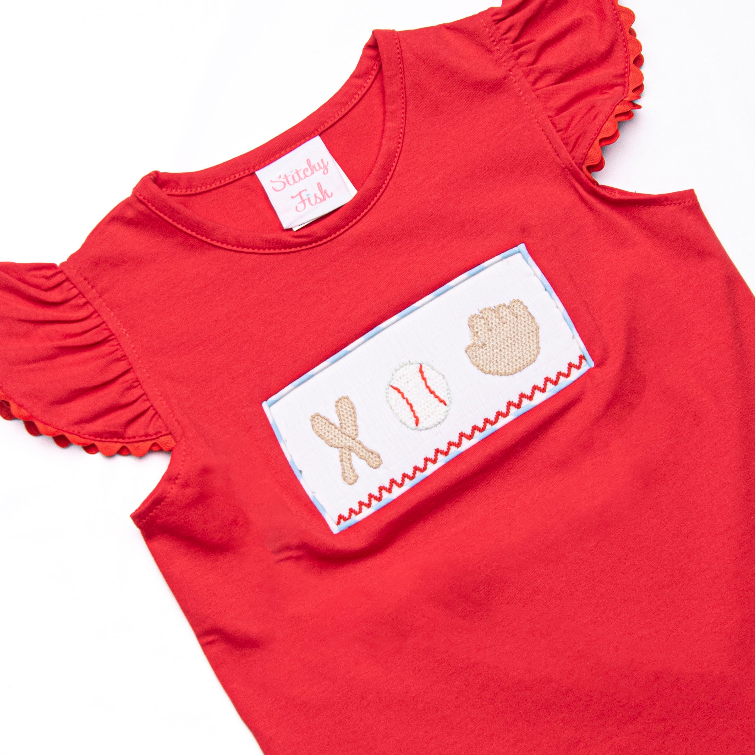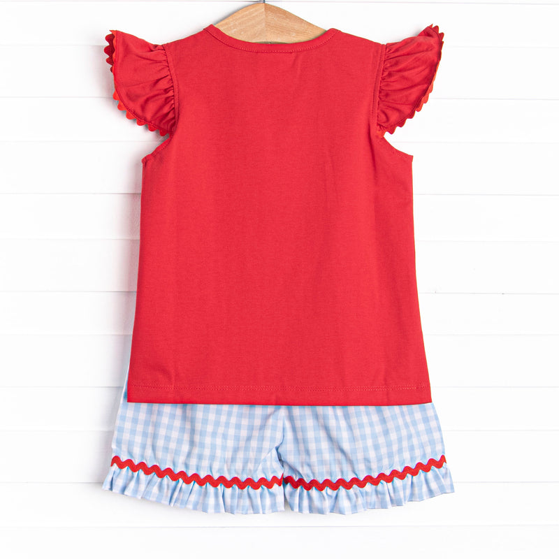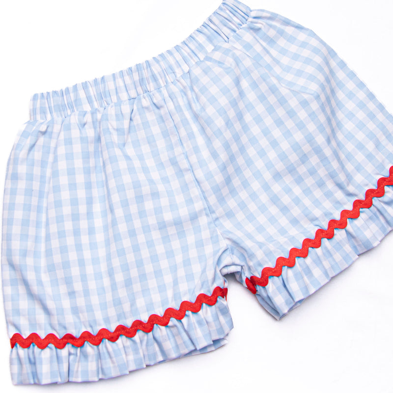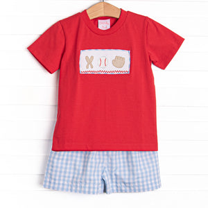Foul Ball Smocked Ruffle Short Set, Blue