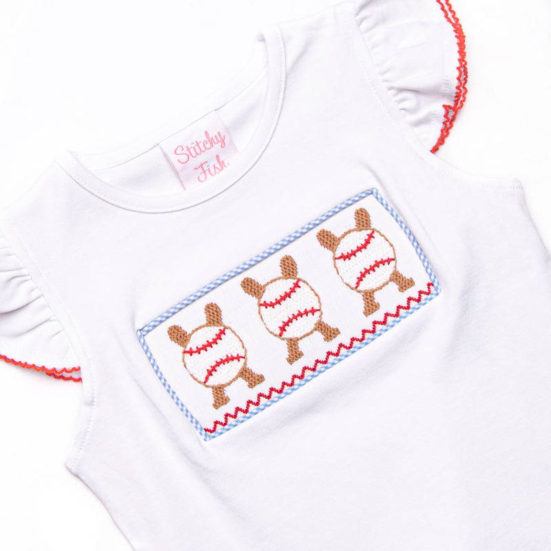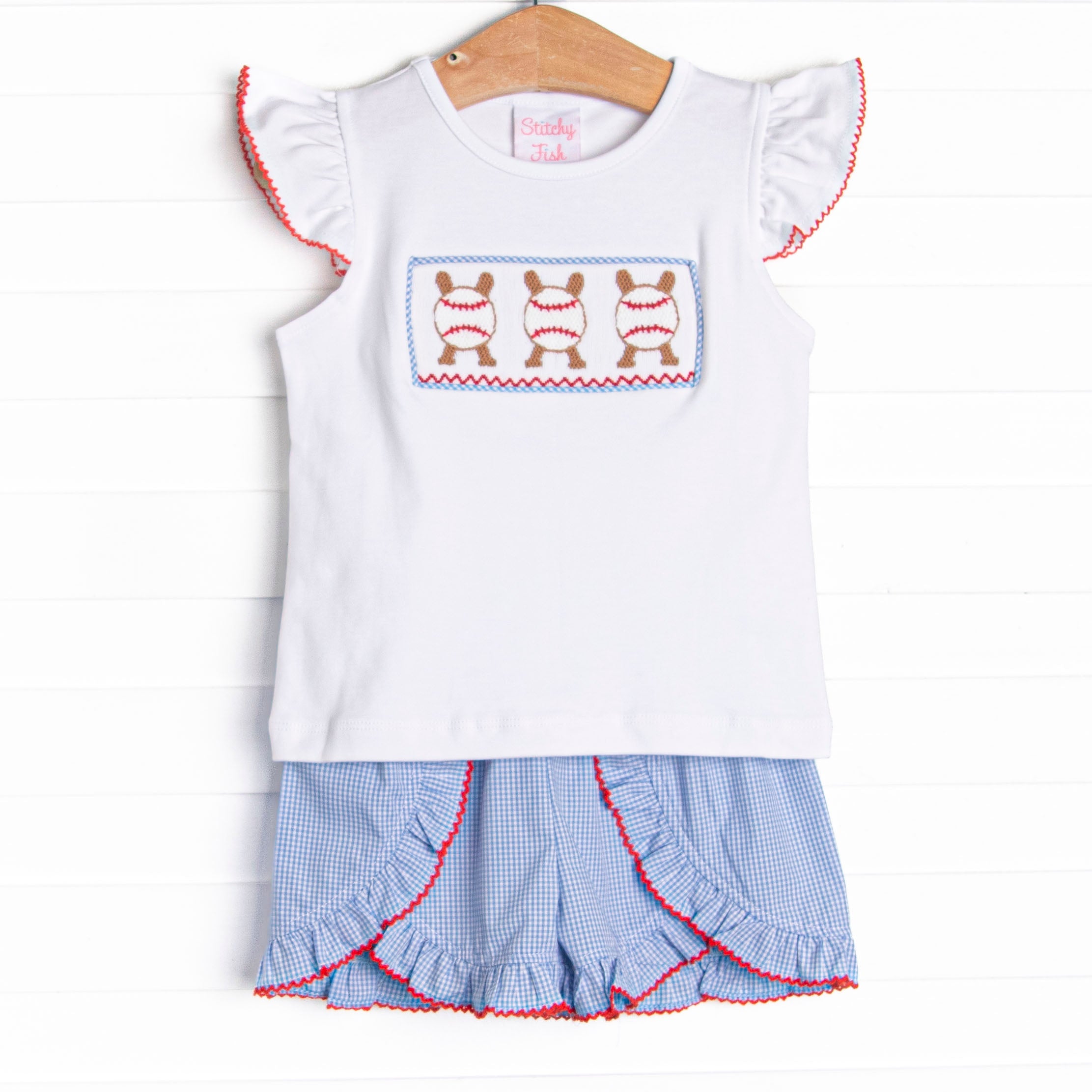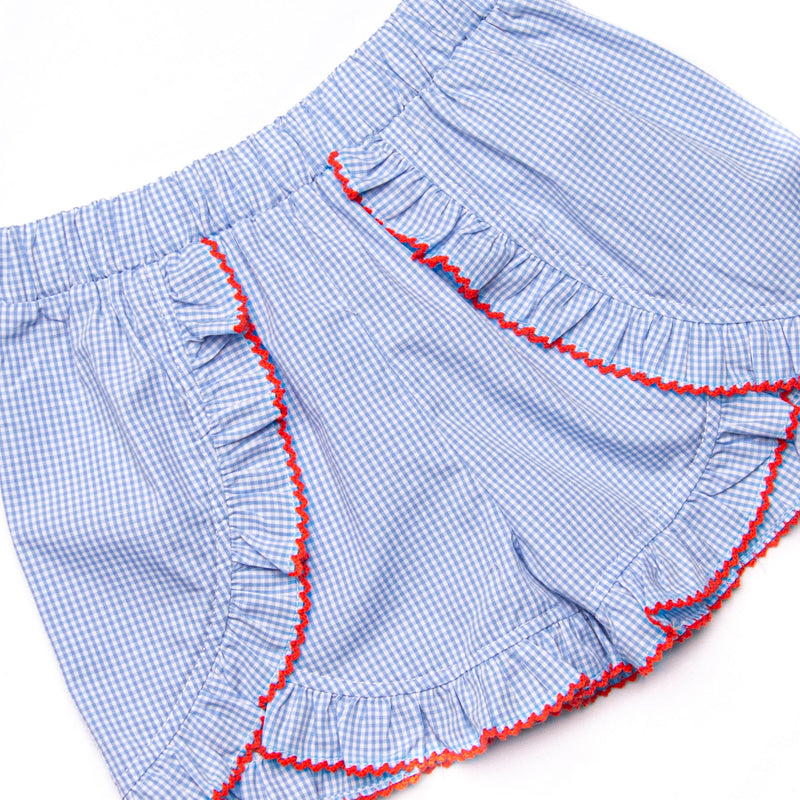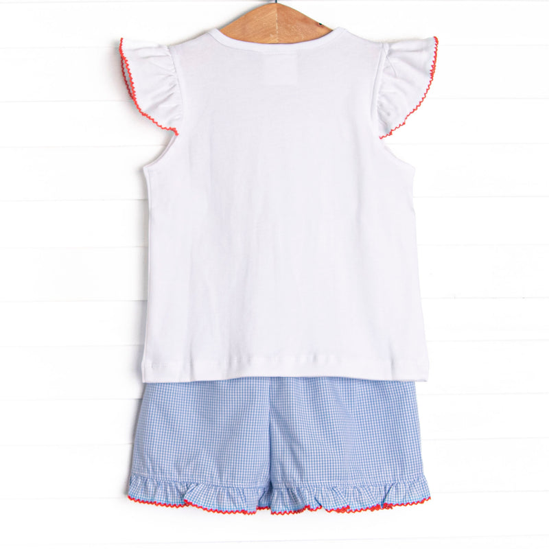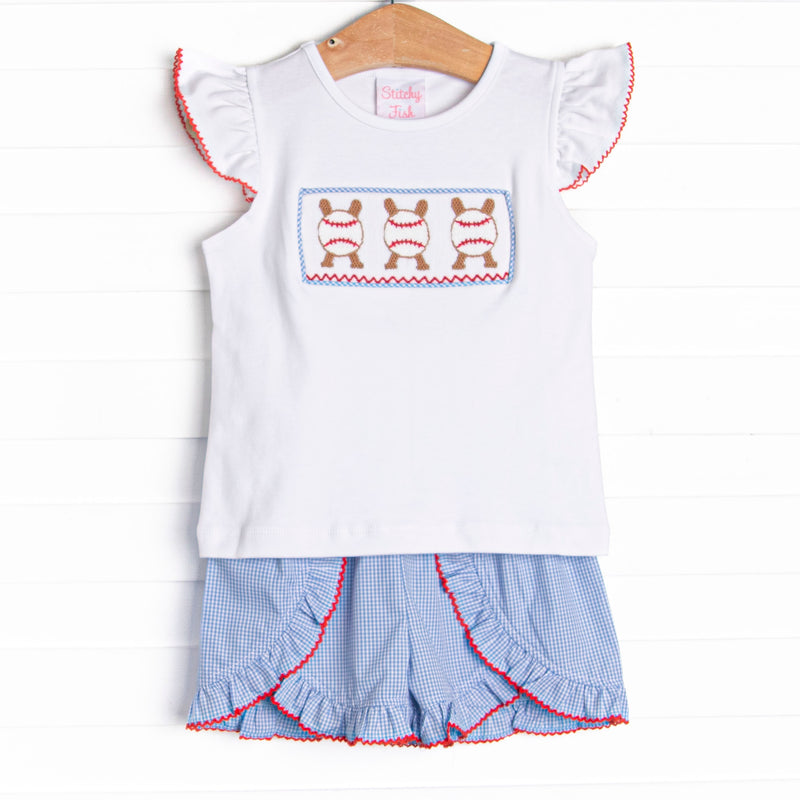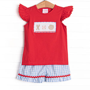 Homerun Hitter Smocked Ruffle Short Set, Blue Gingham