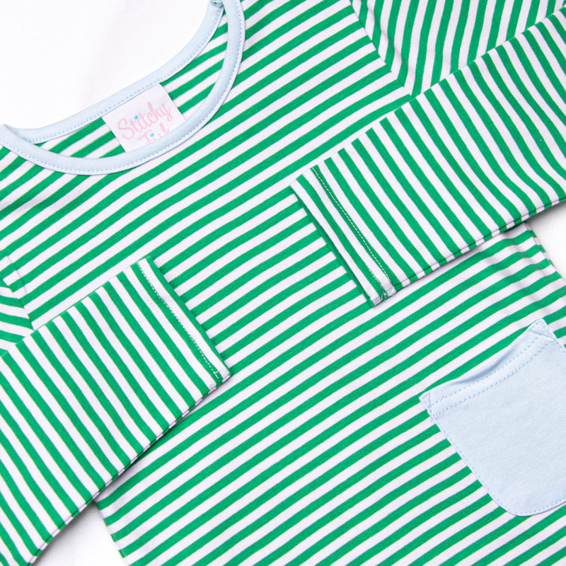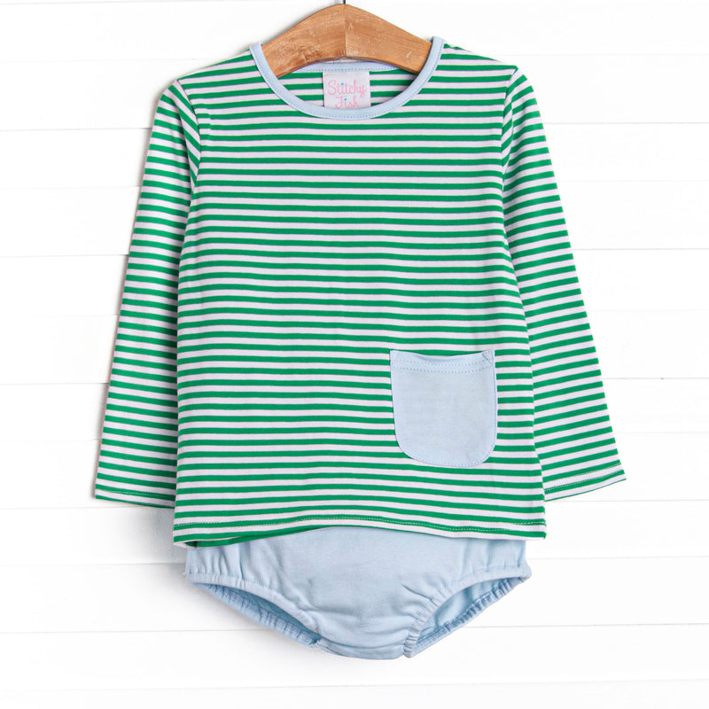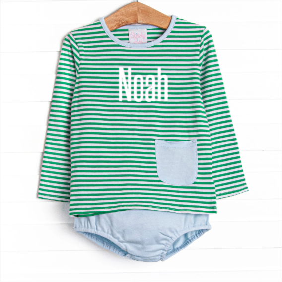 Noah Diaper Set, Light Blue and Kelly Green Stripe