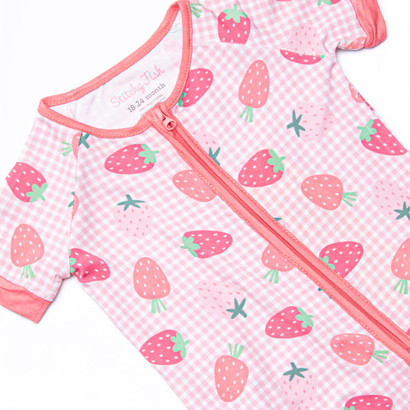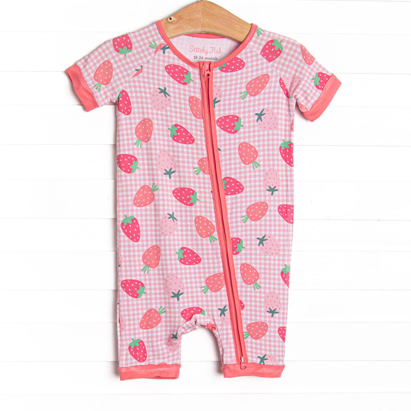 Pineberry Picnic Bamboo Short Zippy Pajama, Pink
