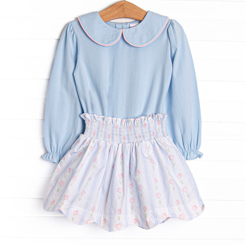 Sweet Pea Stripes Skirt Set, Blue