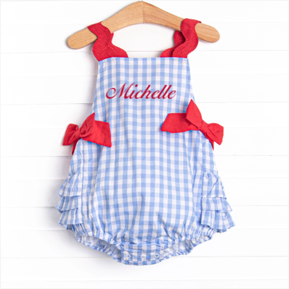 Tried and True Blue Side Tie Bubble, Blue Check