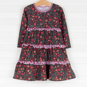 Such a cute little dress. Love the colors and the ruffles.