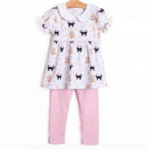 Ghostly Greeting Applique Legging Set, Purple