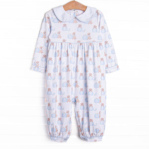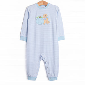 Lil' Pumpkin Embroidered Romper, Blue