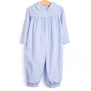 The perfect material for fall. It’s thin and lightweight but has coverage. Love the blue collar!