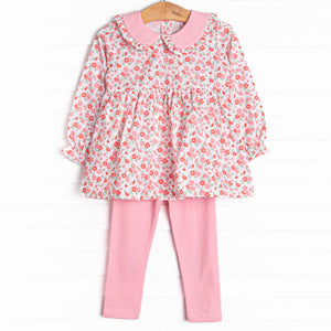 I love the silhouette of this outfit. The fabric is so soft and send so comfy. The pattern adds just enough character do that the put still looks simply sweet.