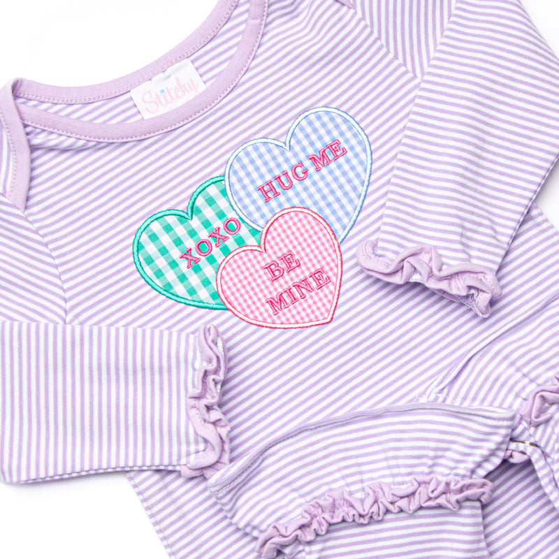["12M","18M","24M","2T","3M","3T","6M","9M","Applique","Bubble","Bubbles","Bubbles22","Candy Hearts","GIRL","Girl 2022","Girl 21","Girl 22","Girl21","Girl22","GirlGirls","Girls","Girls 2022","Girls 21","Girls 22","Girls22","heart","Heart Applique","hearts","Light purple","long romper","Long Sleeve Romper","New Arrivals","nov25","Purple","Purple Knit","Purple Ruffles","purple stripe","Purple Stripes","Regular Price","Romper","rompers","Ruffle","Ruffle Trim","Ruffles","Stripe","Striped","Stripes","Sweetheart","Valentine","Valentine's","Valentine's Day","Valentines 26","vday1"]