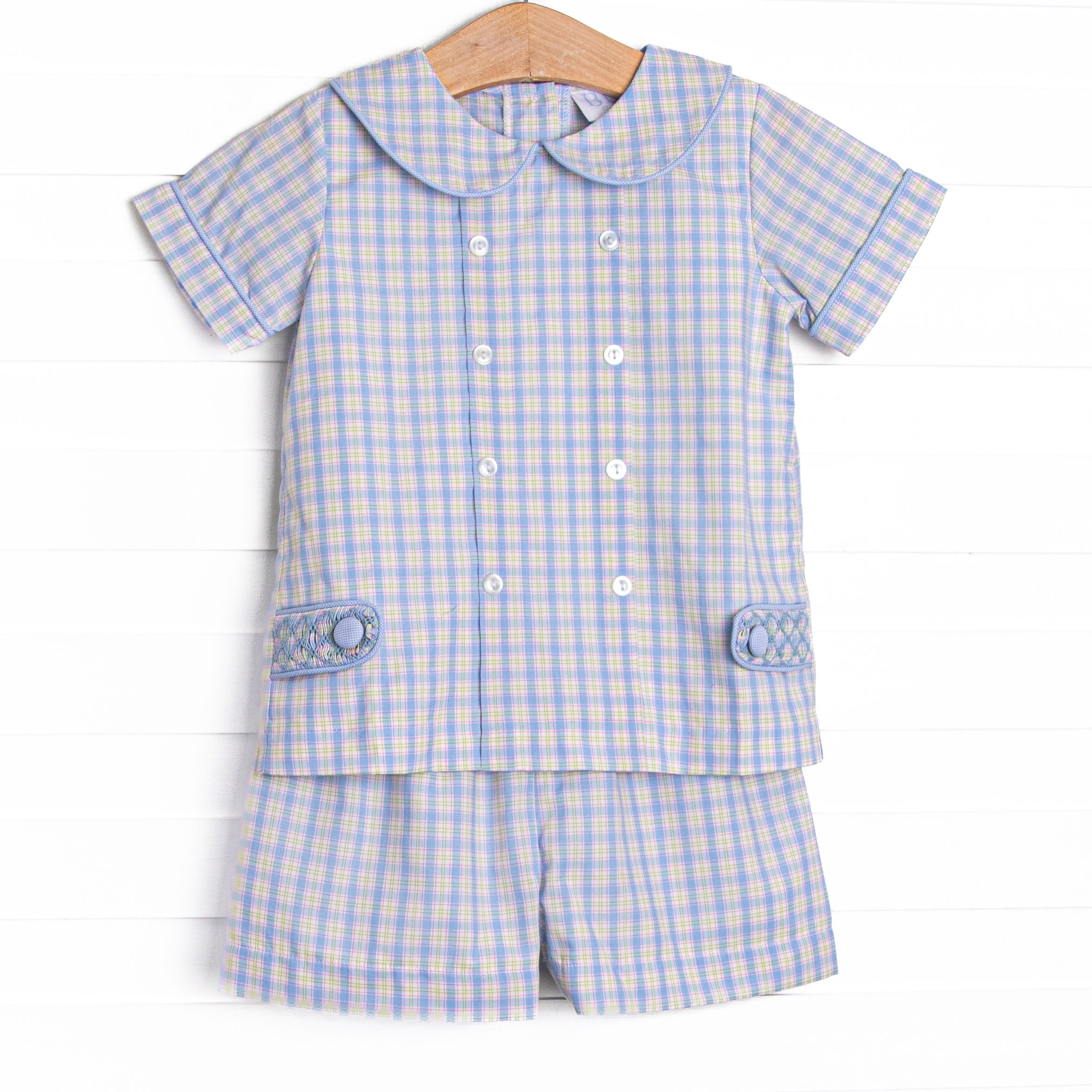 ["12M","18M","24M","2T","3T","4T","5","6","7","Blue","Blue Peter Pan Collar","blue plaid","Boy","Boy 2022","Boy 21","Boy 22","Boy21","Boy22","Boyh","Boys","Boys 21","Boys 22","Boys Short Set","Boys22","button","button on set","buttons","Clear Buttons","DV26","feb26","Front Buttons","Light Blue Plaid","New Arrivals","Peter Pan Collar","Plaid","Plaid Material","Regular Price","Set","Sets","Sets22","Short Set","Short Sleeve","short sleeves","shorts set","Smock","Smocked","Smocked Outfit","smockedco","Smocking","Spring Bleu In Stock 26","Woven Shorts Set"]