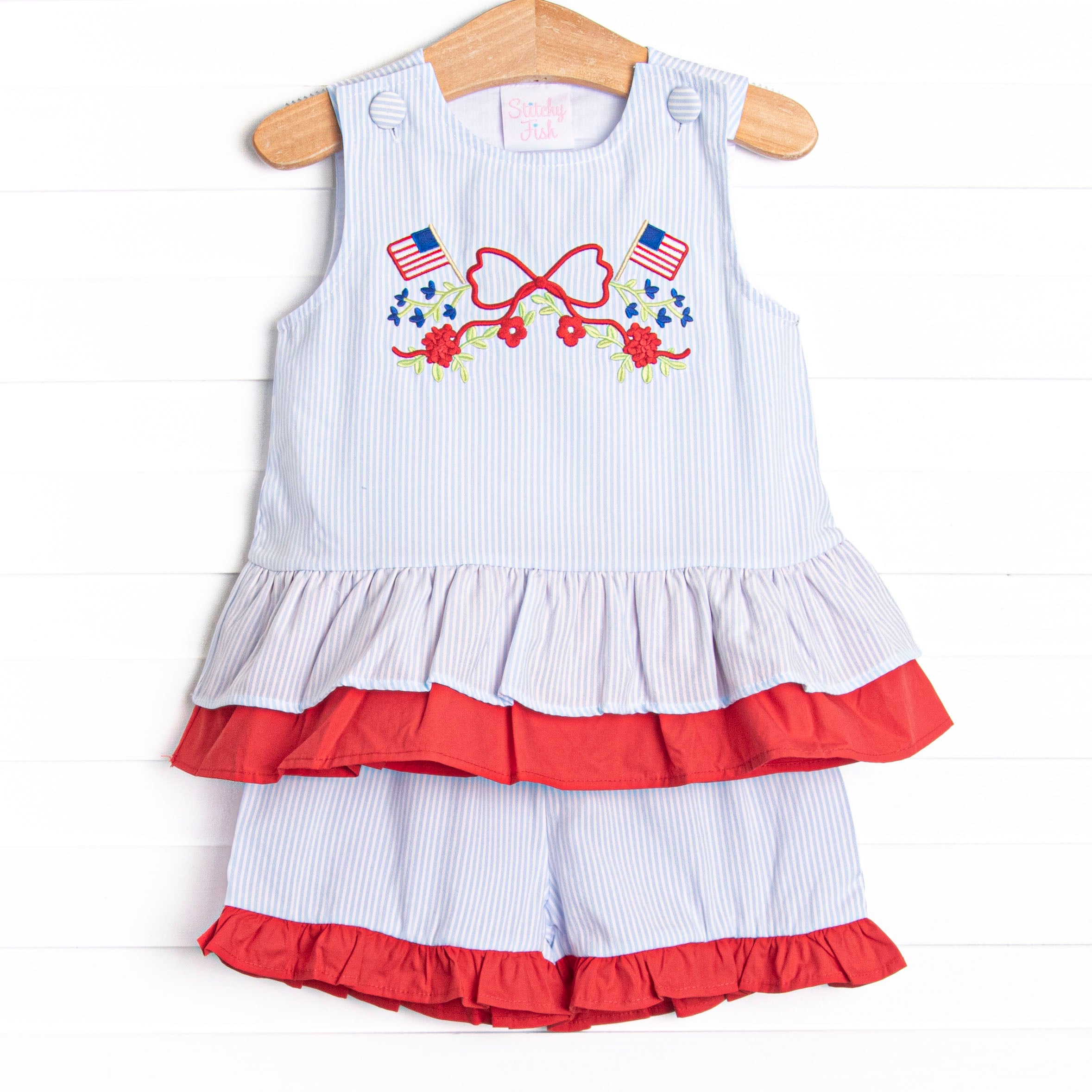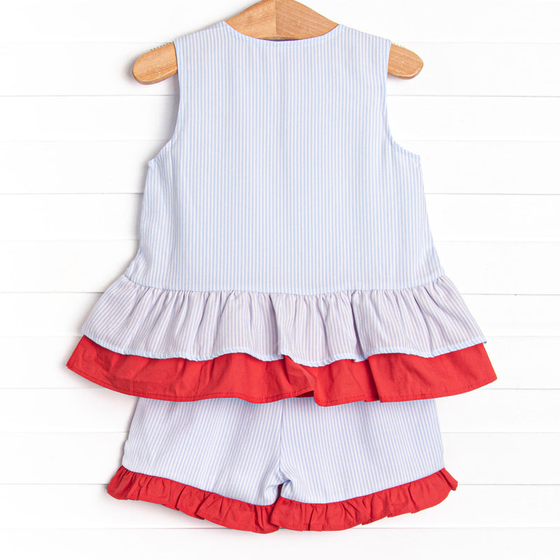 Patriotic Posies Applique Short Set, Blue