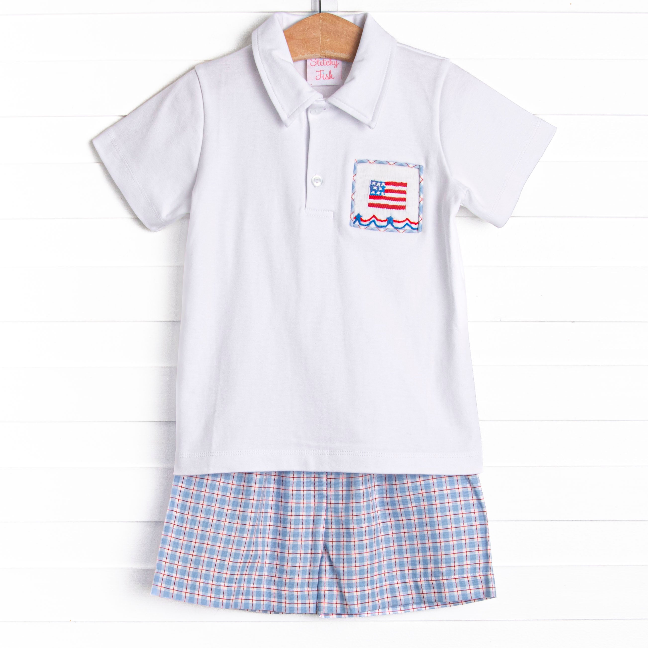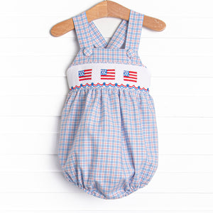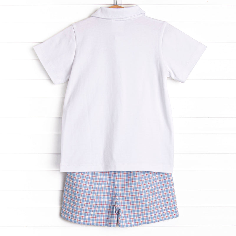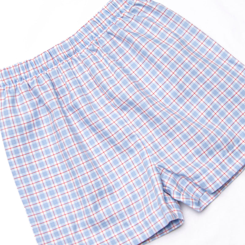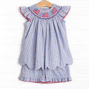Pledge Allegiance Plaid Smocked Short Set, Blue