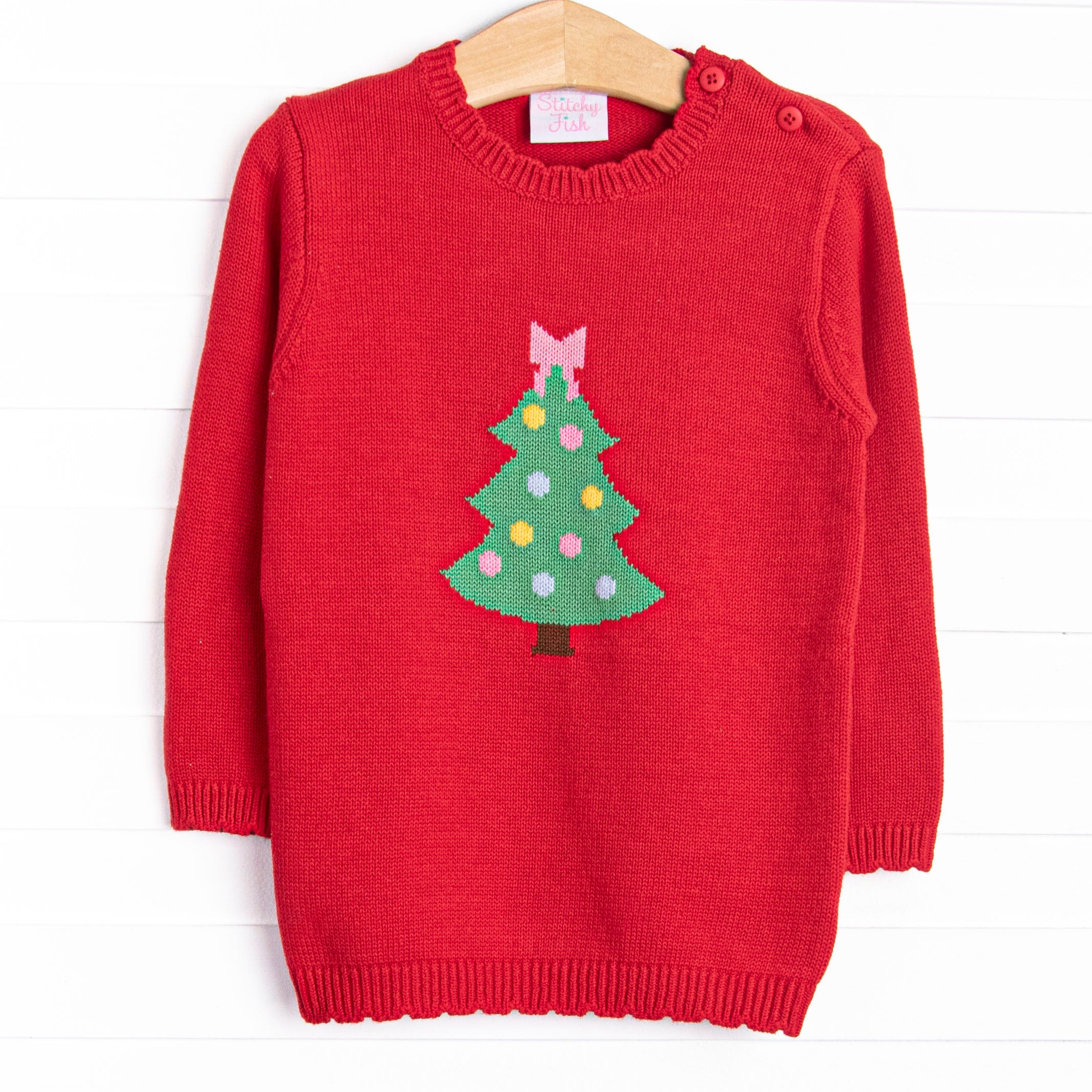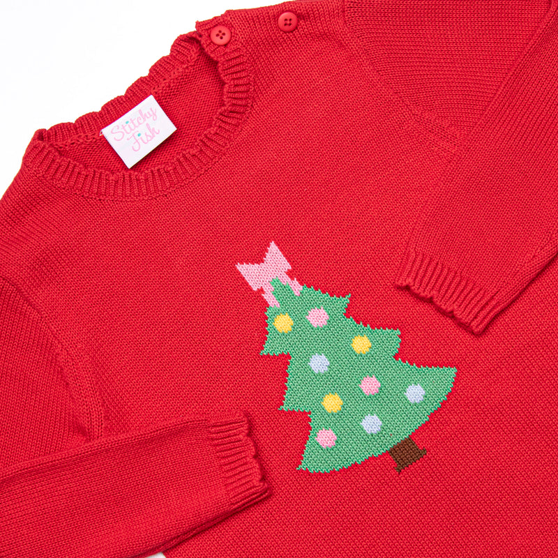 Tree Tradition Girl Sweater, Red