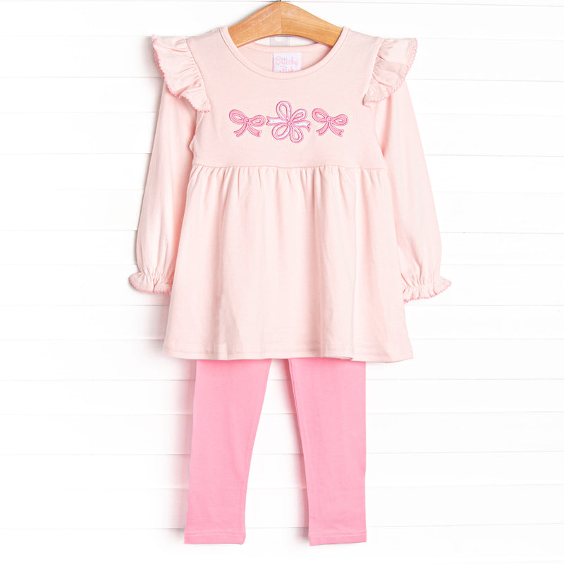 Wrapped in Ribbons Applique Legging Set, Pink